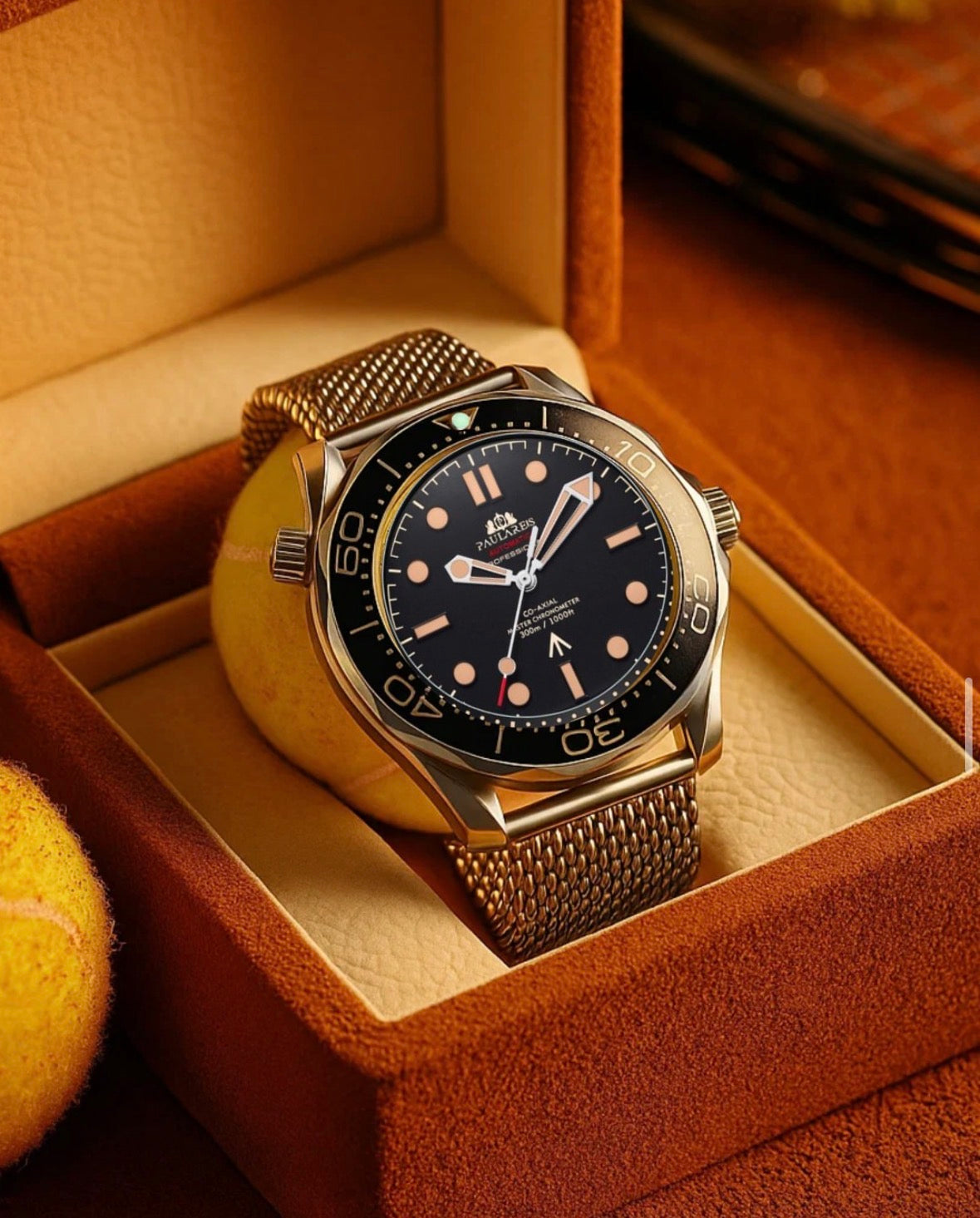 The dial captures the hypnotic rhythm of the sea, with layered textures reminiscent of ocean currents and refined detailing that reflects light like the surface of deep waters. Each element serves a purpose — crafted not for excess, but for endurance, beauty, and precision.