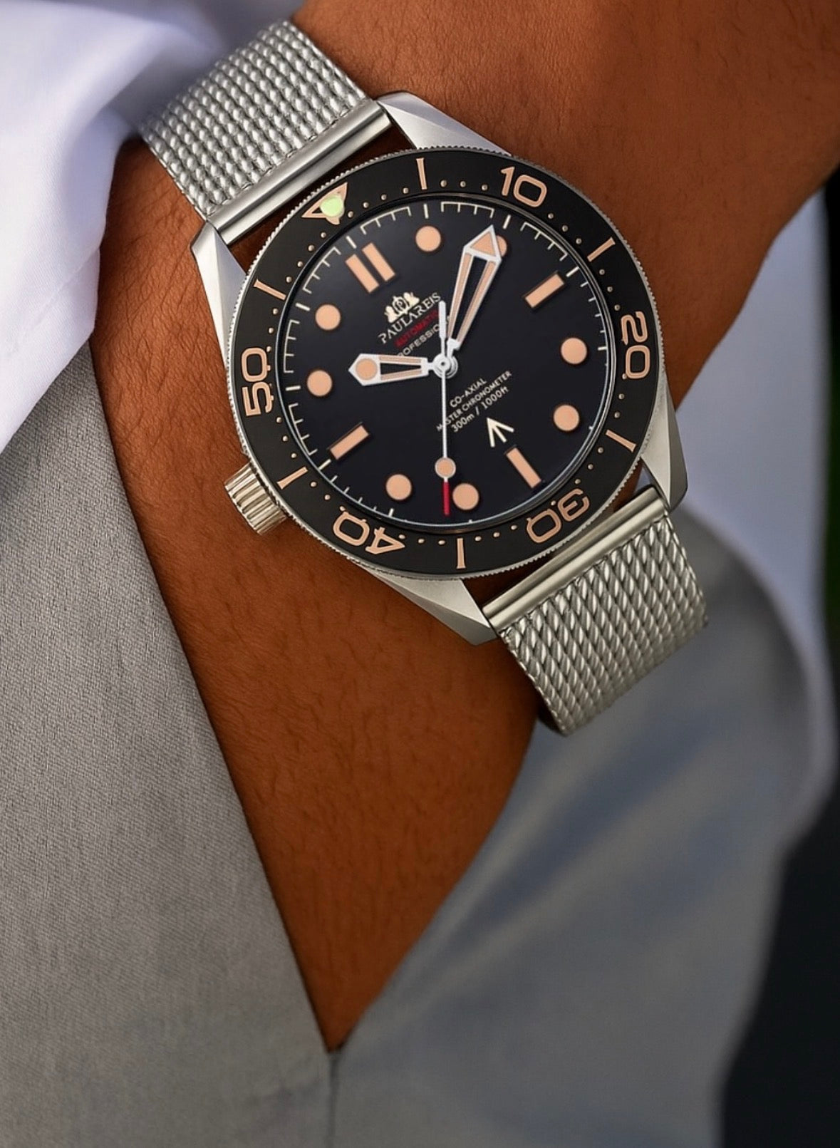 Inspired by the resilience of its namesake, the OCTOPUS™ combines intelligent design with unmatched adaptability. The unidirectional rotating bezel allows for precise dive timing, while luminous hands and indices ensure perfect legibility in low light or deep water. With 20 ATM (200 meters) of water resistance, this timepiece is built for serious diving performance — without compromising elegance on land.